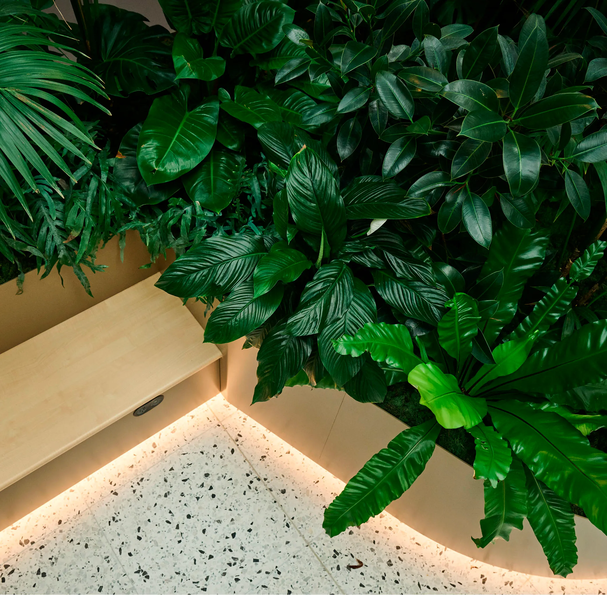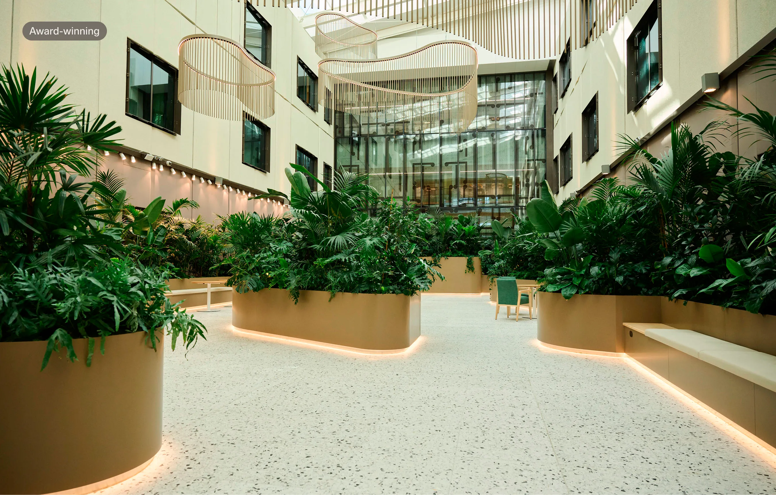 "With their specialist expertise in selecting the right plants to thrive in internal environments, and technical expertise in delivering the design concept to perfection, Outside In have brought the vision for this garden to life."