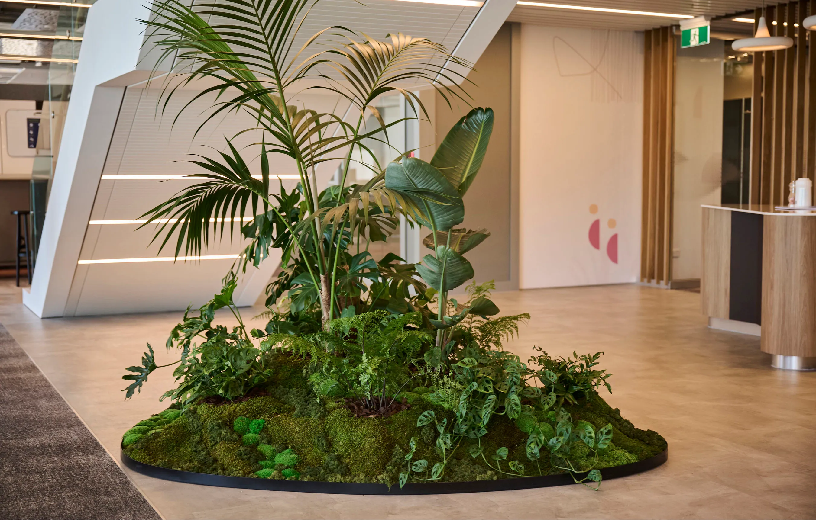 This Forest Floor® evokes the feeling that you are walking in the native bush, weaving between the foliage. Bespoke options are available, including impactful stand-alone planter islands. The Forest Floor® creates an inspiring visual aesthetic that benefits health and wellbeing.