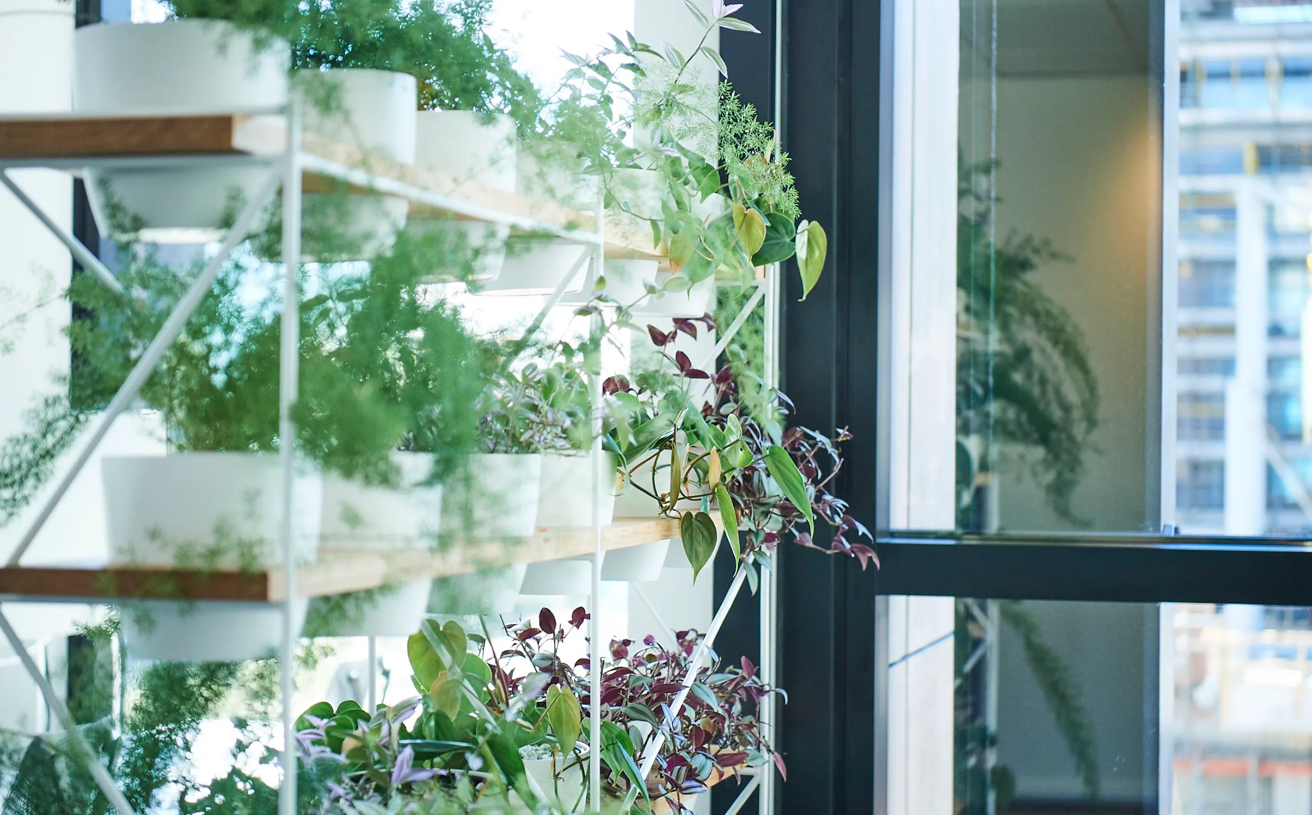 An ideal choice for encouraging deep focus while at work, plant racks provide views of nature that help promote productivity in your workplace and encourage collaboration between your people. Plants racks by Outside In can be custom-made, with a range of powder-coated options available. Filled with a curated collection of our plants for hire, plant racks create highly inviting spaces for people to enjoy.