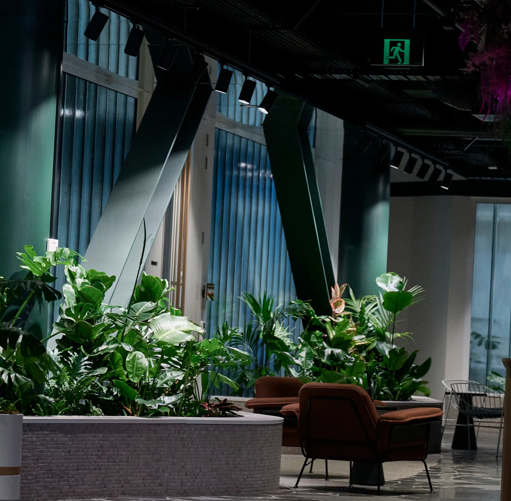 From custom plant chandeliers to a bespoke moss wall, the atrium at 44 Bowen Street brings immersive and inspiring nature inside.