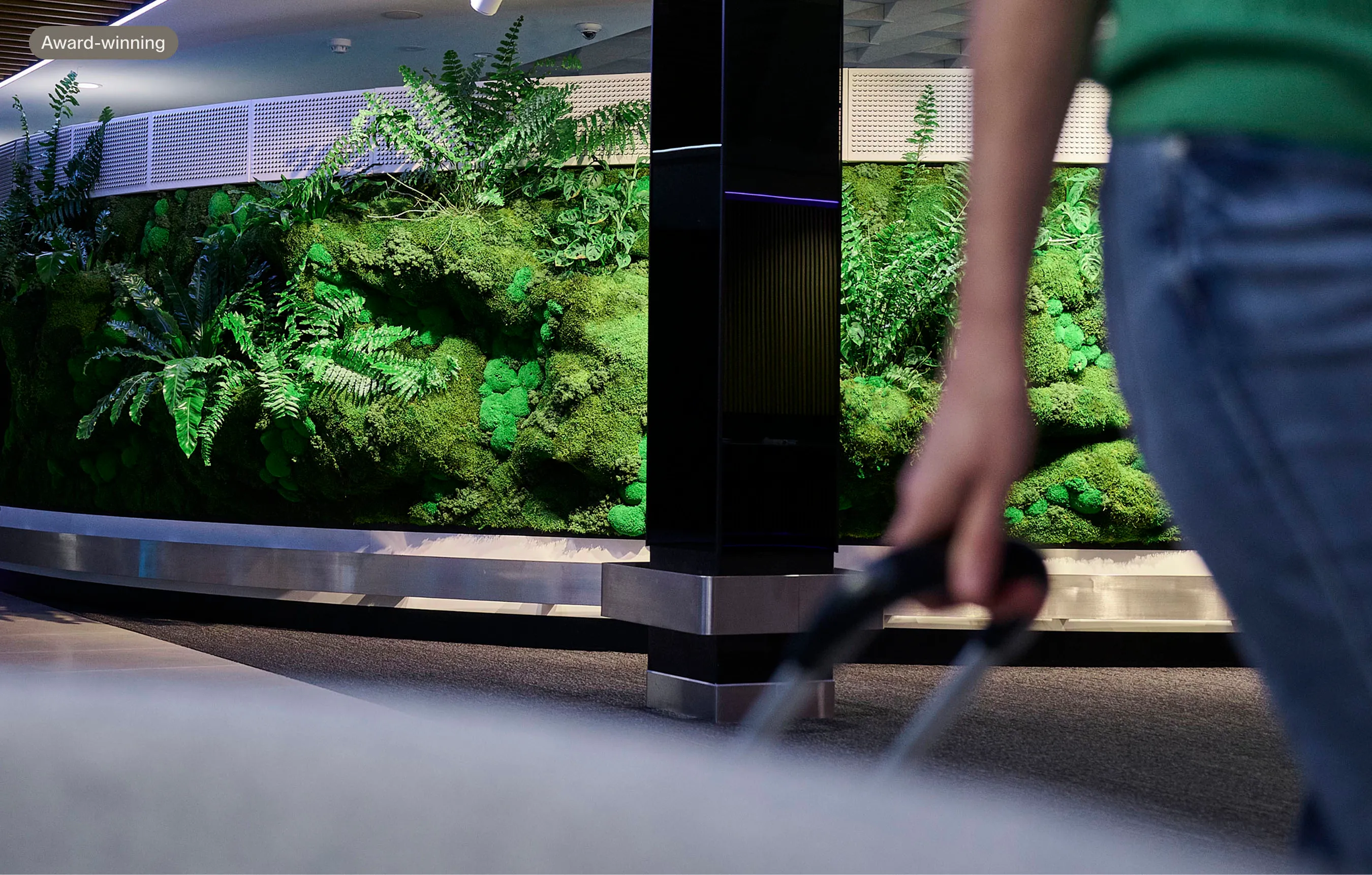 Sculptural greenery creates a unique biophilic feature for Air New Zealand’s premium check-in.