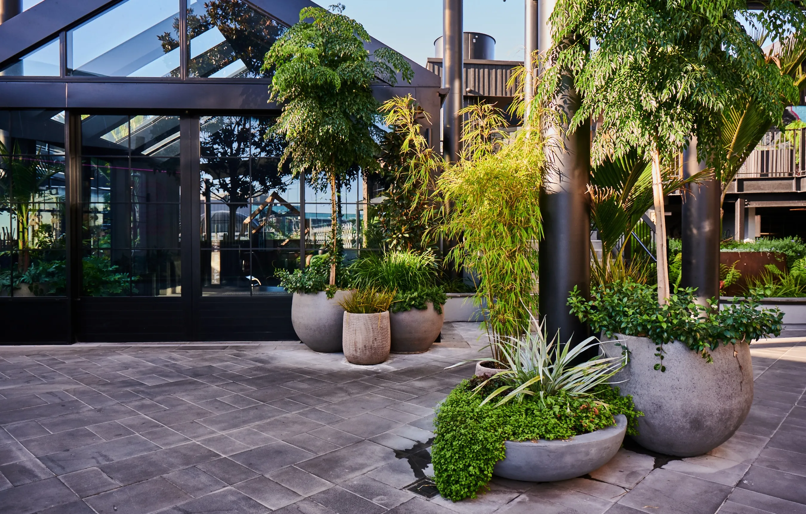 At Outside In, we offer meticulous quality standards. That means our horticulturalists include those specially trained to work at height. This gives Westfield Newmarket the benefit of having their green wall optimally maintained. In 750m2 of green wall at Westfield Newmarket, you’ll find over 18,000 plants (including native species). The equally impressive intensive rooftop gardens were designed by Boffa Miskell. These feature hanging plants, mature trees, native ferns, and flowering specimens. The scope and scale of the exterior planting has the added benefit of supporting biodiversity, while helping cool and clean the air. Stepping into the gardens, shoppers are transported into a place that rejuvenates and restores. With our superb expertise, and fully inclusive service, the experience for the client is just as enjoyable.